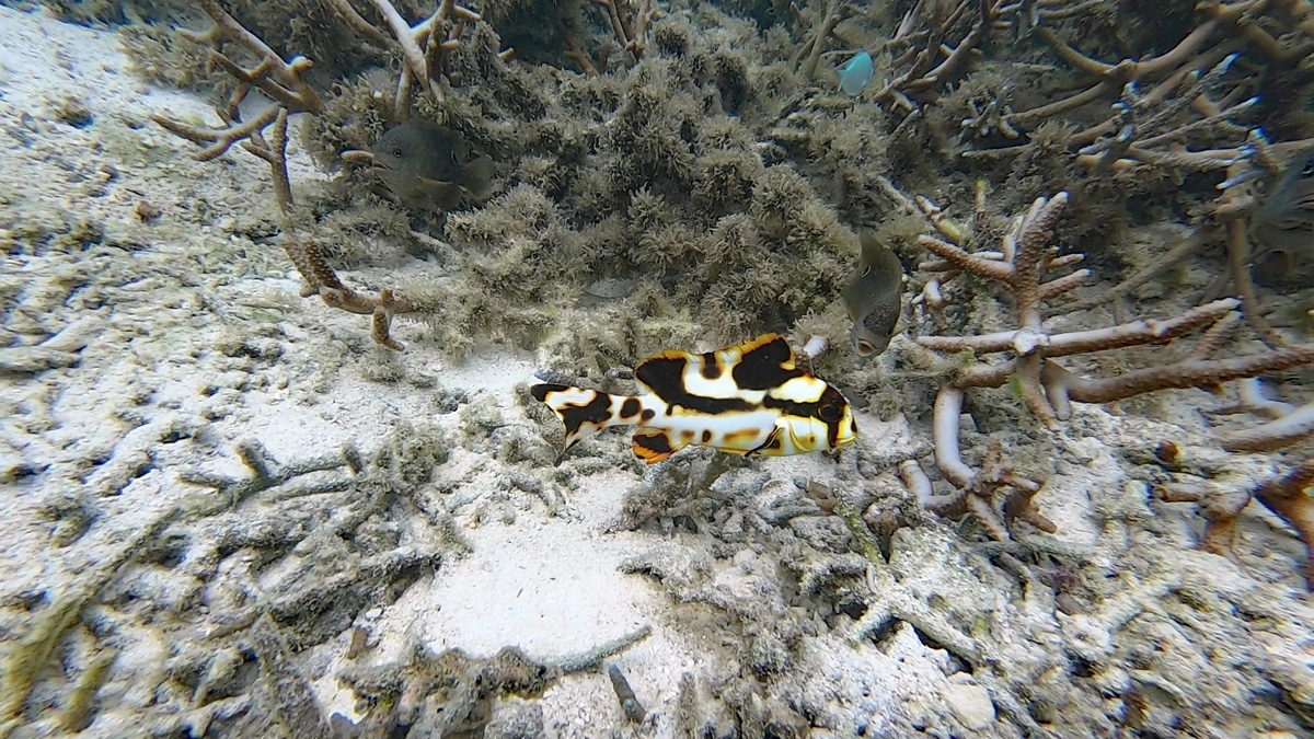 In den strandnahen flachen Korallen lassen sich außerdem Koffer- und Kugelfische beobachten, ansonsten trifft man hier eher auf die kleineren Bewohner des Meeres.