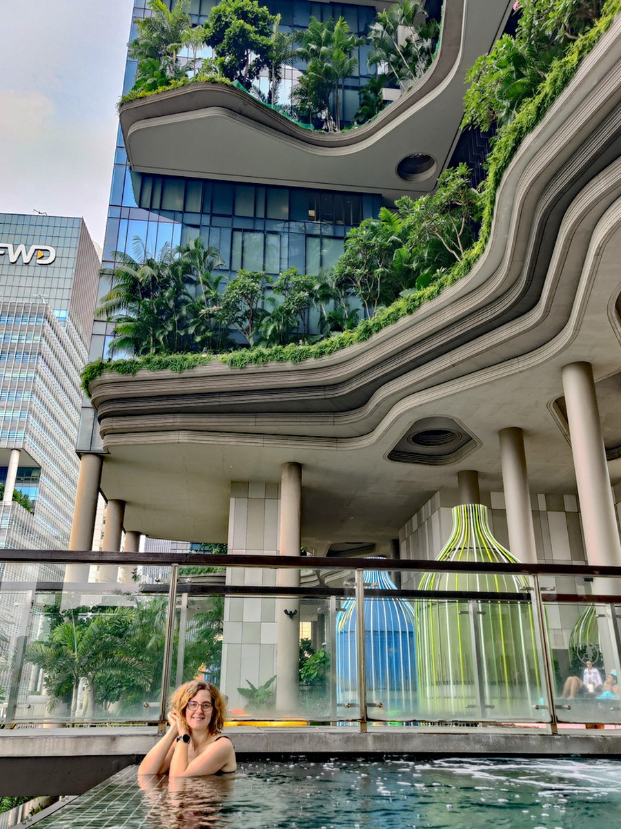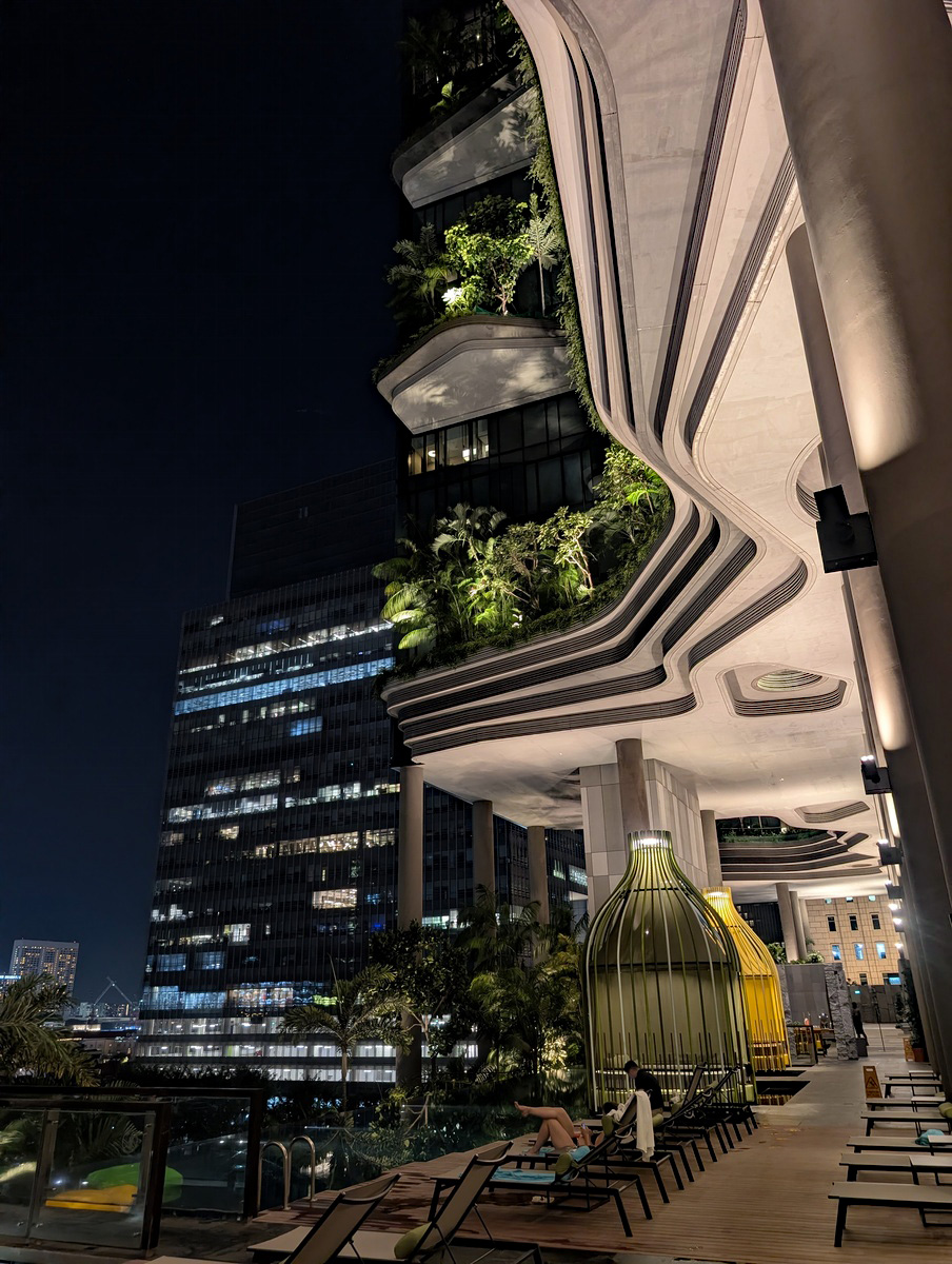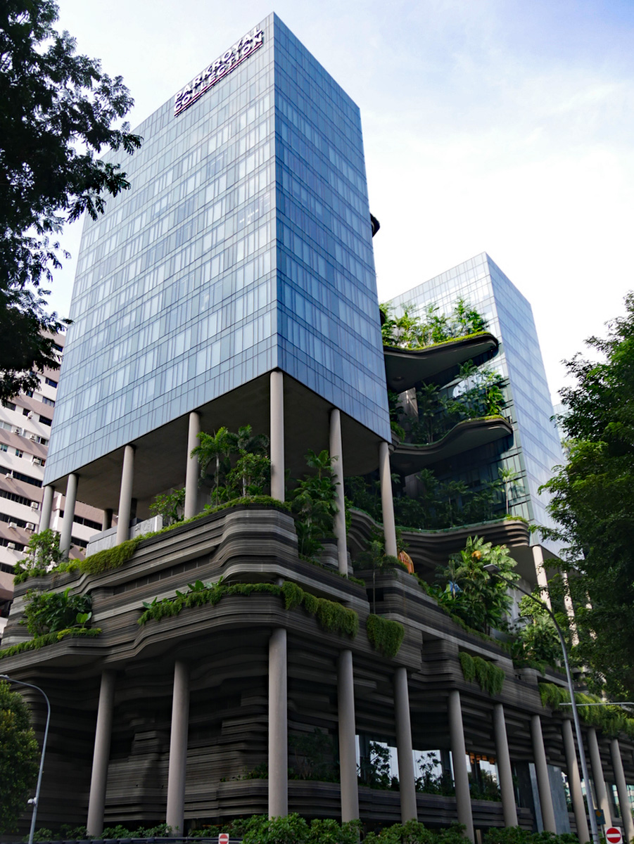 Das Hotel wurde von einem renommierten Architekturbüro aus Singapur entworfen und 2013 eröffnet. Mit seiner außergewöhnlichen, nachhaltigen Architektur und den terrassenartig angelegten Gärten wirkt es wie eine grüne Oase mitten in der Stadt. Die üppigen Pflanzen, die sich über die Etagen ziehen, lassen das Gebäude fast wie einen vertikalen Garten erscheinen – ein Anblick, der nicht nur beeindruckt, sondern dem Hotel auch bereits zahlreiche Auszeichnungen eingebracht hat.