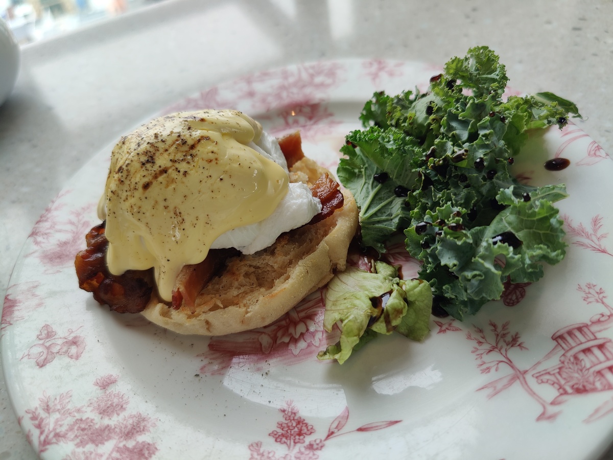 Zu dem Set gehört ein traditioneller Kopi, ein kräftiger Filterkaffee mit gesüßter Kondensmilch. Dieses Frühstück ist mit knapp 5 EUR pro Set äußerst günstig und erfreut sich in Singapur auf jeden Fall großer Beliebtheit.