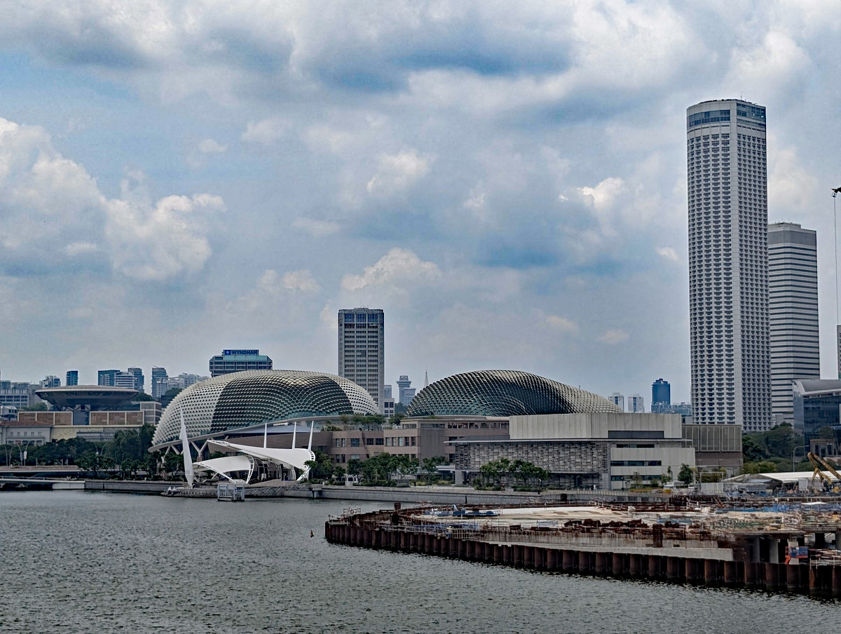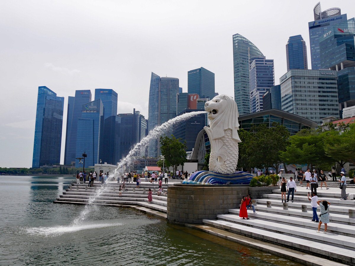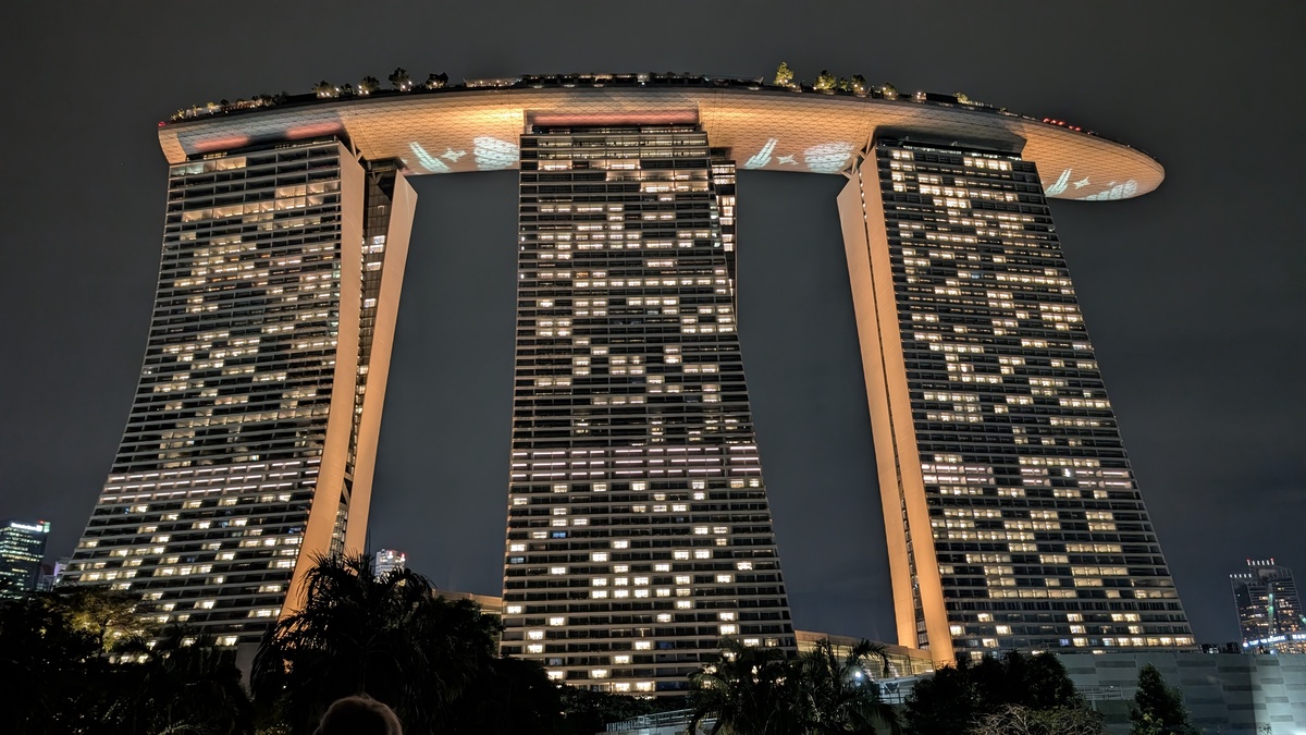 Wir schlendern durch die Stadt, vorbei am markanten Gebäude des Supreme Courts, das aussieht, als wäre ein Ufo auf dem Dach gelandet. Wir sehen das Parlament und erreichen schließlich die Marina Bay, wo der Merlion – eines der Wahrzeichen Singapurs – von Dutzenden Touristen belagert wird. Von hier eröffnet sich bereits ein fantastischer Blick auf das berühmte Luxushotel Marina Bay Sands mit seinen drei unverwechselbaren Türmen, auf denen scheinbar ein Schiff thront.