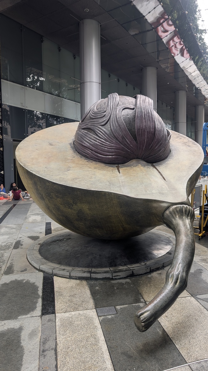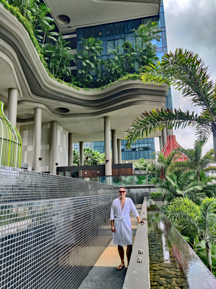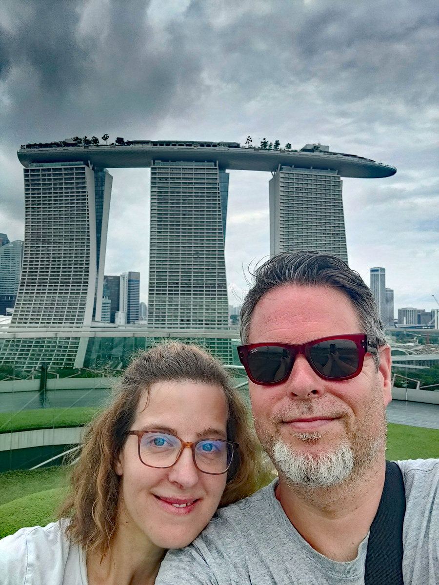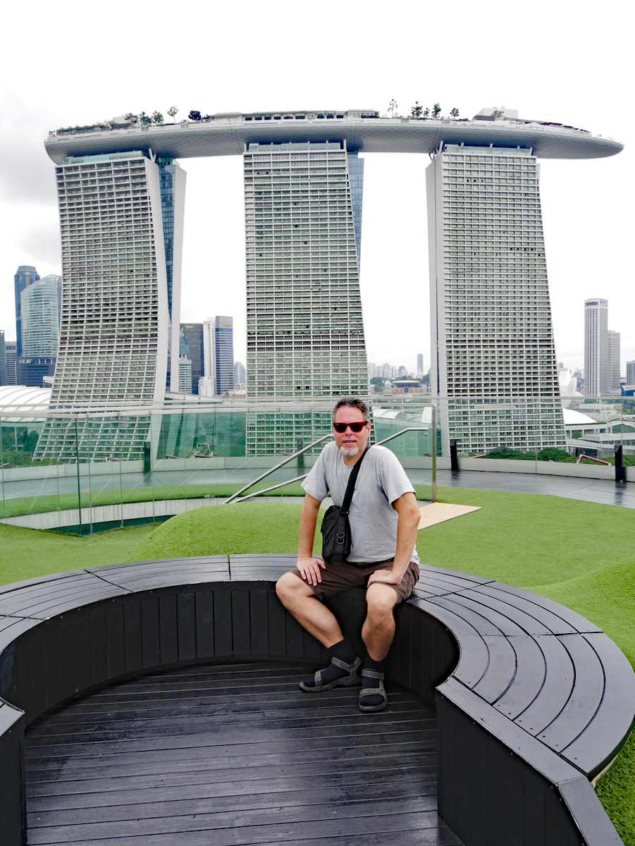 Wir schlendern durch die Stadt, vorbei am markanten Gebäude des Supreme Courts, das aussieht, als wäre ein Ufo auf dem Dach gelandet. Wir sehen das Parlament und erreichen schließlich die Marina Bay, wo der Merlion – eines der Wahrzeichen Singapurs – von Dutzenden Touristen belagert wird. Von hier eröffnet sich bereits ein fantastischer Blick auf das berühmte Luxushotel Marina Bay Sands mit seinen drei unverwechselbaren Türmen, auf denen scheinbar ein Schiff thront.