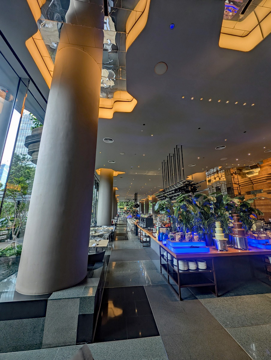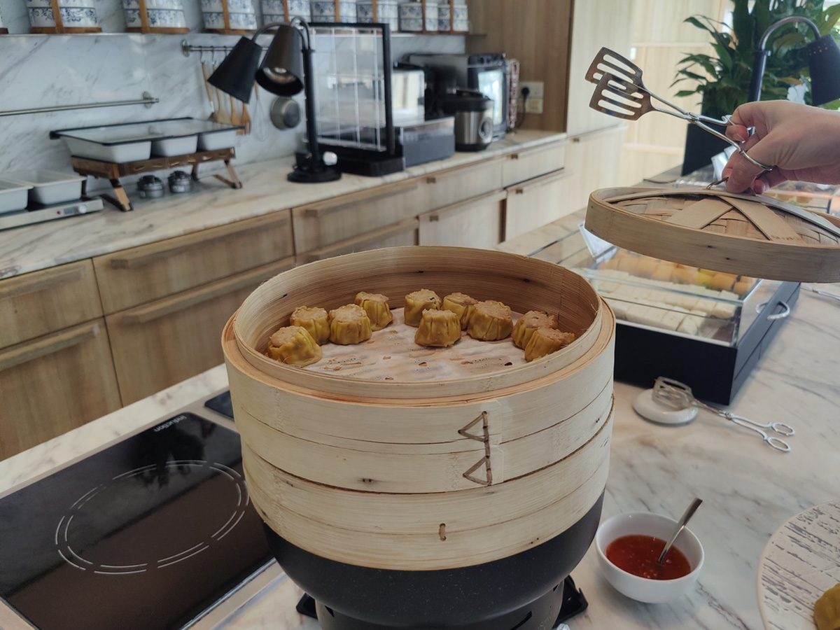 An unserem zweiten Morgen probieren wir das Standard-Frühstück im Lime-Restaurant. Die Auswahl ist beeindruckend groß und bietet viele asiatische Frühstücksgerichte zum Kennenlernen. Dennoch muss ich gestehen, dass mir persönlich die kleinere, dafür exklusivere Auswahl in der Lounge besser gefallen hat – nicht zuletzt wegen der gemütlichen Ruhe und dem grandiosen Ausblick. Und nein, das lag wirklich nicht am Sekt, versprochen.