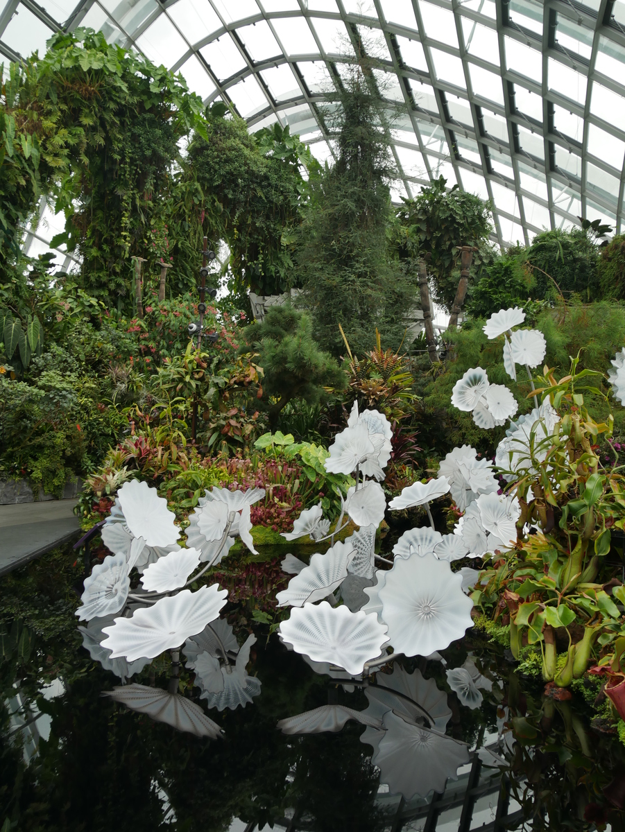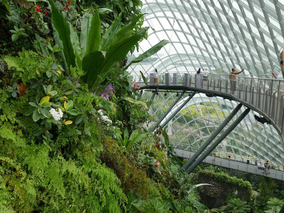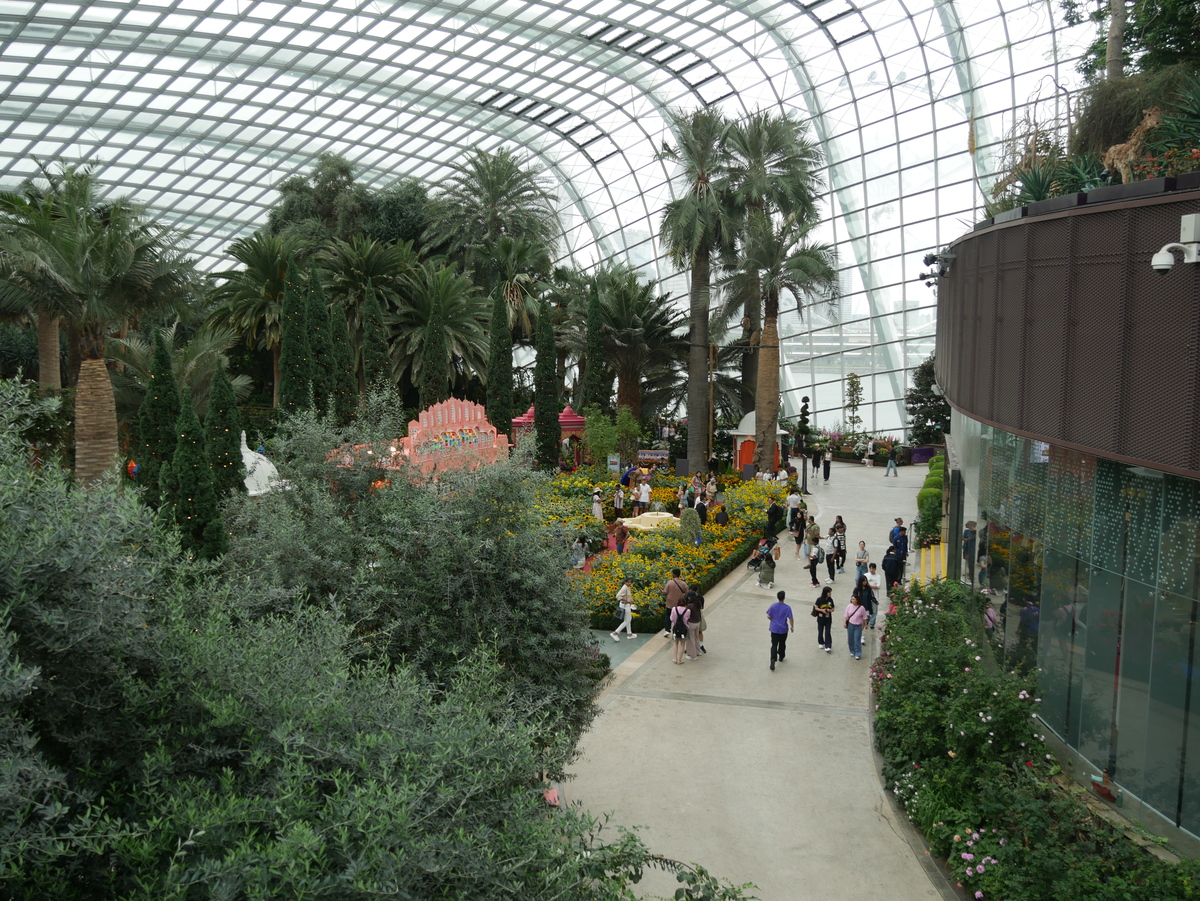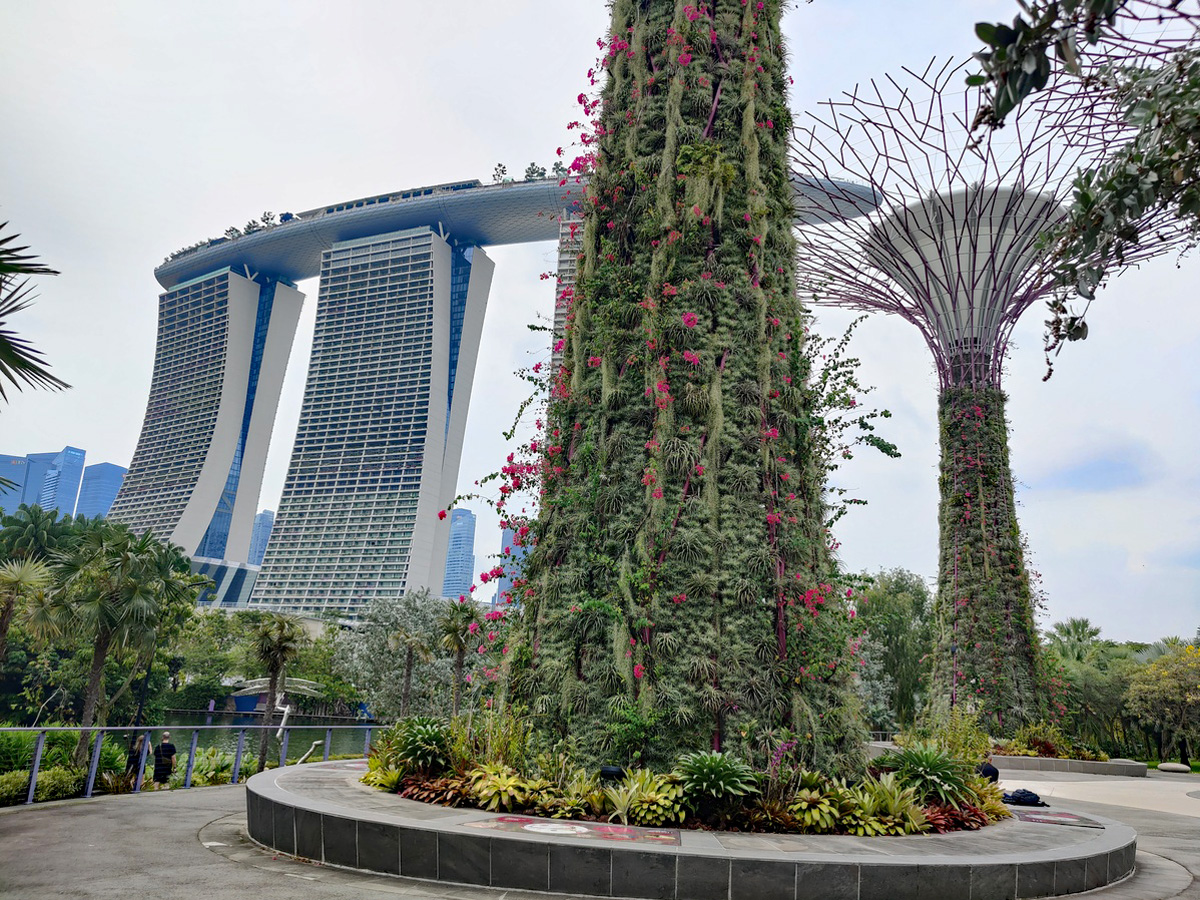 Zum Abschluss wartet noch die Blumenausstellung im Flower Dome auf uns. Hier sind Pflanzen aus allen Regionen der Erde zu sehen, das aktuelle Schwerpunktthema: Sonnenblumen. Während wir durch die Ausstellung schlendern, prasseln Wassermassen an der Glaskuppel herab – draußen scheint ein regelrechter Wolkenbruch niederzugehen. Doch als wir die Ausstellung verlassen, hat sich der Regen bereits wieder gelegt, und wir erreichen trocken die MRT-Station Bayside.