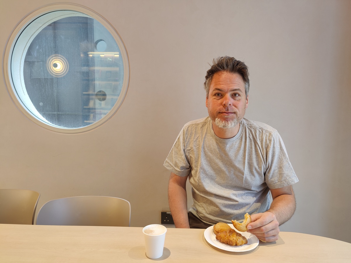 Gegen halb neun starten wir in den neuen Tag. Unser Hostel bietet zwar kein richtiges Frühstück, doch Kaffee und eine kleine Auswahl an Teilchen – Muffins, Croissants und Co. – versüßen uns den Morgen. Wir genießen dieses kleine Frühstück auf der Dachterrasse des Hostels. Nebenan wird ein Gebäude saniert; die Geräusche nehmen wir kurz wahr, doch sie gehören für uns irgendwie zum typischen Sound der Stadt und stören nicht weiter.