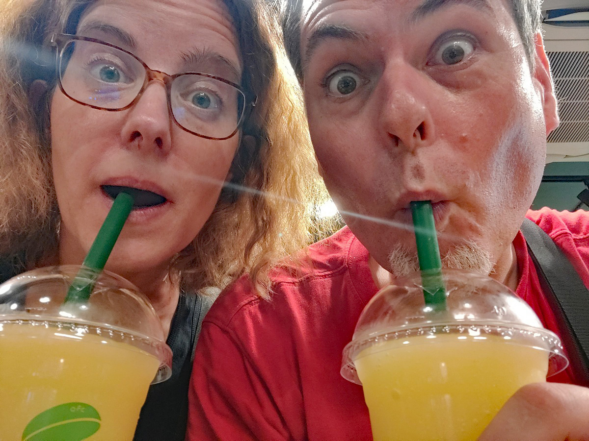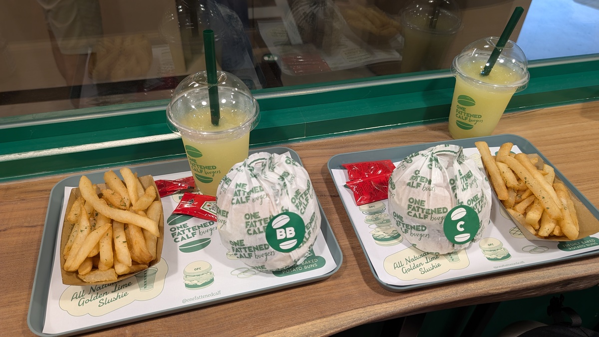 Der Burgerladen ist gut besucht, doch wir müssen nicht lange warten und können relativ schnell bestellen und unsere Plätze einnehmen. Für mich gibt es ein Cheeseburger-Menü, Sören entscheidet sich für den Butter Burger – hier sorgen zwei dicke Scheiben Butter für ein besonderes Geschmackserlebnis. Dazu werden perfekt knusprige Pommes serviert und ein erfrischender Slushi auf Basis der Calamansi-Zitrusfrucht.