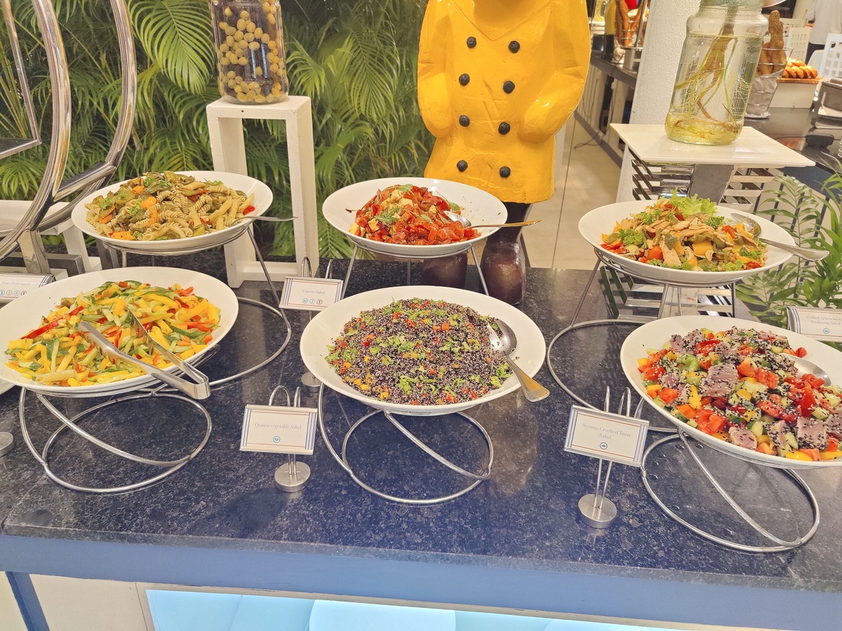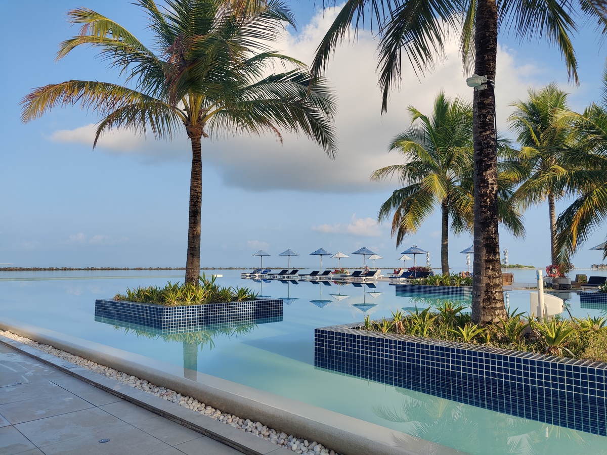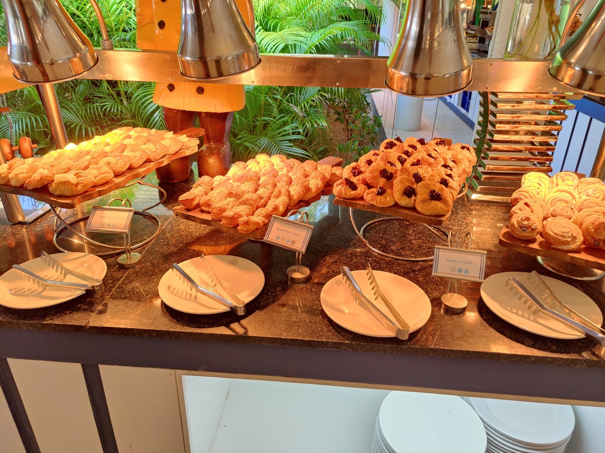 Die Zeit, die wir nicht am Pool verbringen, zieht es uns in die mit dem Upgrade gebuchte Club Collection Lounge. Dort beginnt der Tag mit einem exklusiven Frühstück, zu dem sogar Sekt gereicht wird. Am Nachmittag genießt man hier einen klassischen Afternoon-Tea oder Kaffee, begleitet von herzhaften Kleinigkeiten wie Dim Sums, Wraps und kleinen Sandwiches sowie süßen Versuchungen – von Keksen über edle Minitörtchen bis hin zu Scones mit Clotted Cream und Marmelade. Abends zwischen 18 und 20 Uhr werden Cocktails und andere alkoholische Getränke serviert, dazu kleine, feine Snacks, die durchaus als leichtes Abendessen durchgehen.