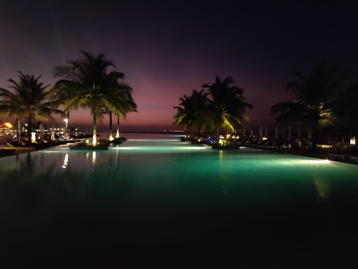 Weiterhin befindet sich dort auch der Poolbereich, der sich optisch bei Tag und bei Nacht wirklich sehen lassen kann.