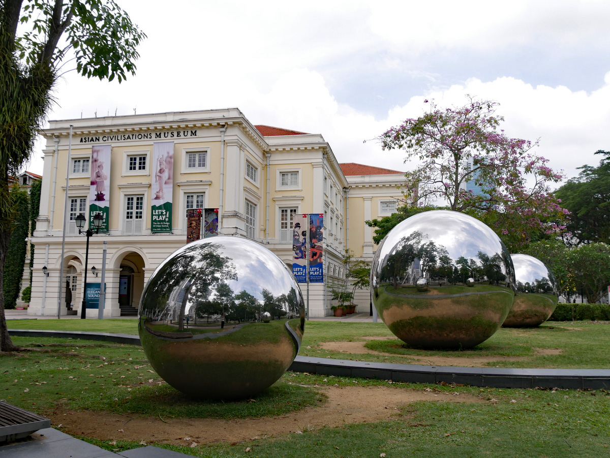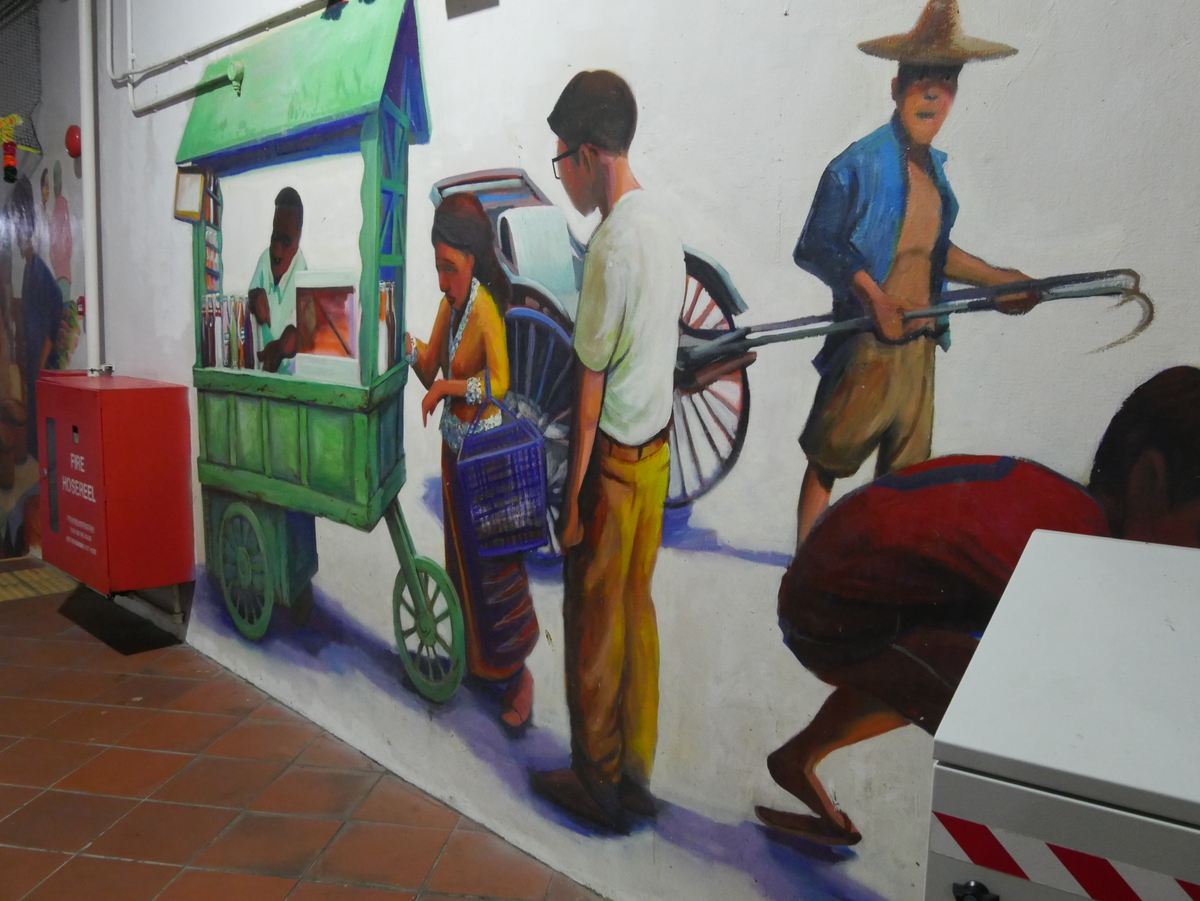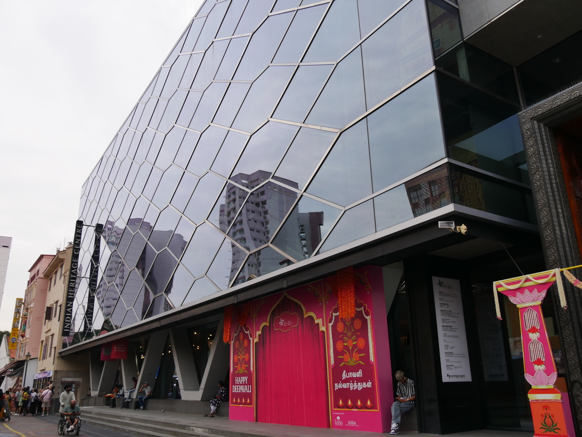 Schräg gegenüber befindet sich das architektonisch äußerst interessante Gebäude des Indian Heritage Centers, das spannende Einblicke in die Geschichte und Kultur der indischen Gemeinschaft in Singapur bietet. Auch wir wollen uns das anschauen. Neben uns sind mehrere Schulklassen unterwegs. Wir hören, wie ein Lehrer seine Schüler zur Rücksichtnahme ermahnt: „Pass by like a ghost!“ – eine Aufforderung, die wir amüsant finden.