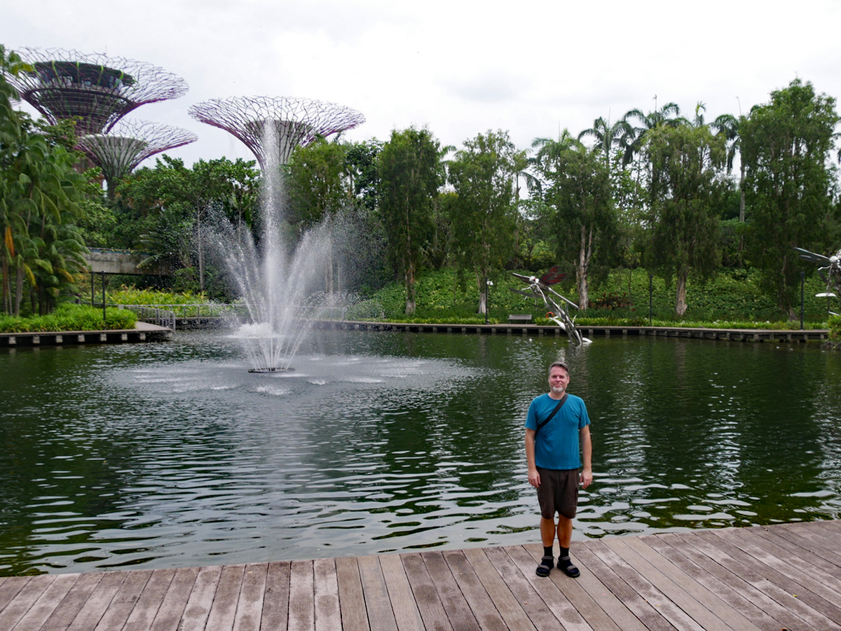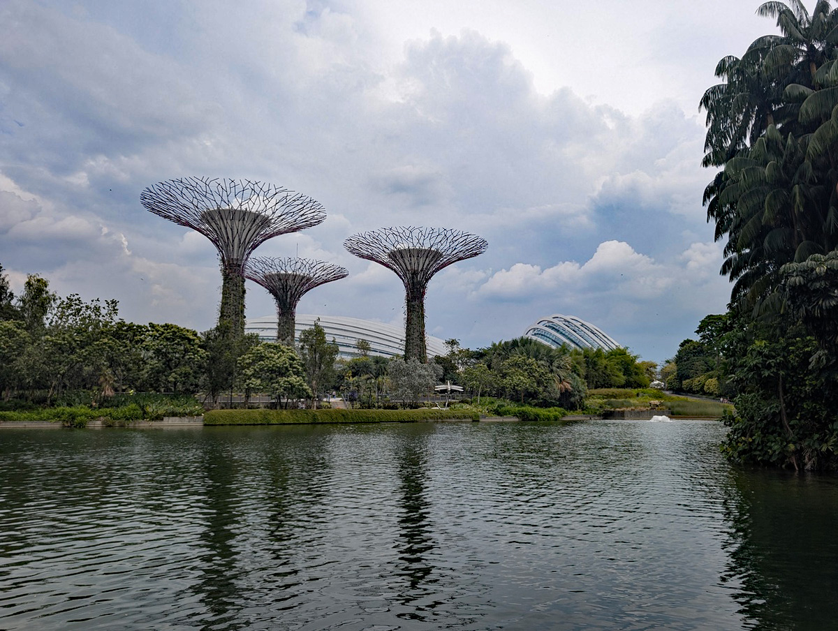 Nach einem kleinen Schaufensterbummel erreichen wir schließlich den Ausgang am Gardens by the Bay. Dieser Park ist – abgesehen von einigen besonderen Ausstellungen – kostenlos zugänglich. Und nun stehen sie vor uns, live und in Farbe: die bekannten Supertrees. Das wahre Spektakel beginnt hier allerdings erst mit Einbruch der Dunkelheit, wenn die Bäume in ein faszinierendes Lichtspiel gehüllt werden. Für uns bleibt es zunächst ein kleiner Vorgeschmack, denn den ausführlichen Besuch inklusive der Ausstellungen haben wir für einen anderen Tag eingeplant.