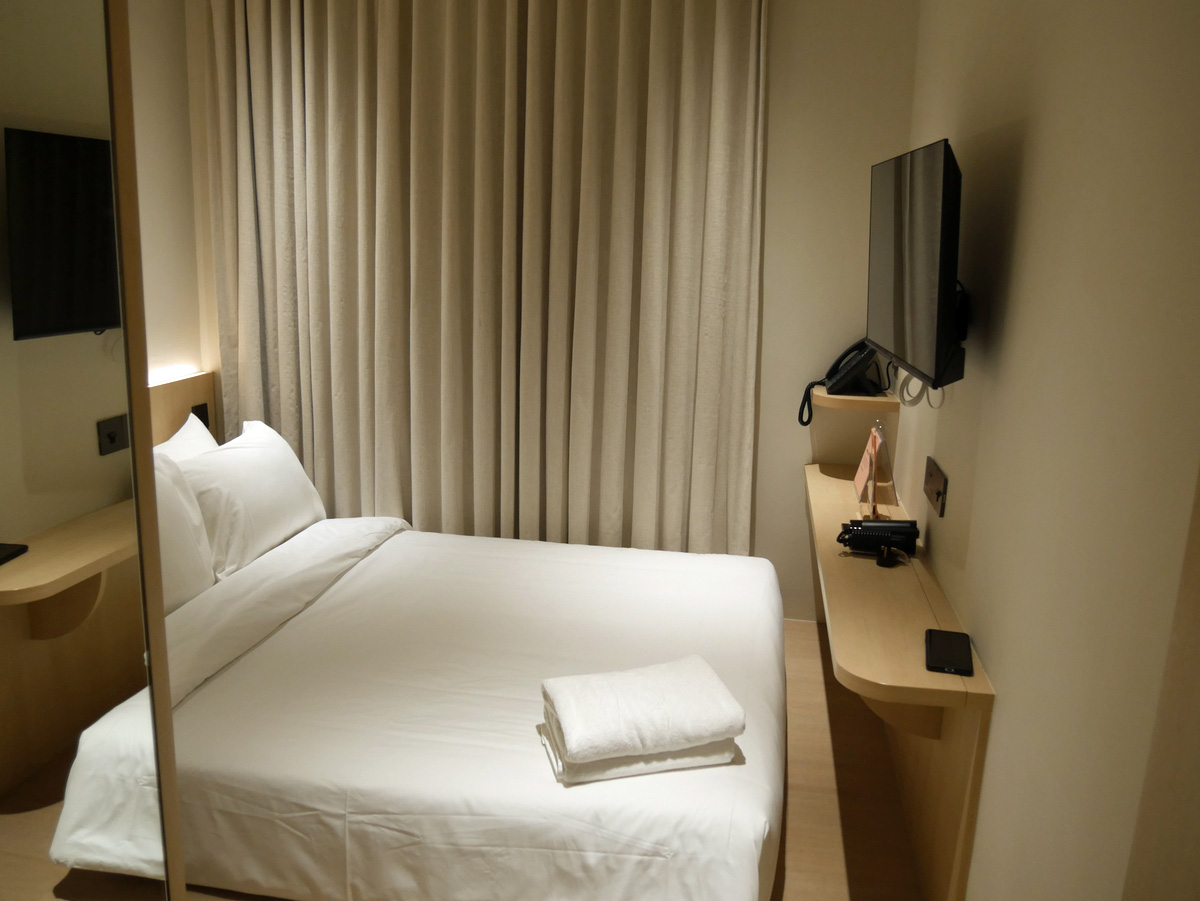 Da wir während unserer bevorstehenden Erkundungstrips ohnehin wenig Zeit im Hotel verbringen werden, haben wir uns für ein Microzimmer im kleinen Hostel Kinn Habitat entschieden. Das Zimmer misst rund 10 m² und verfügt über ein kompaktes Bad. Auf einer kleinen Erhöhung – Vorsicht, Stufe! – liegt die Matratze. Klein, durchgestylt und extrem gemütlich. Die Lage ist perfekt: mitten im Quay-Viertel.