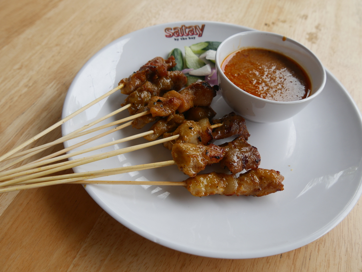 In der Ausstellung verbringen wir knapp zwei Stunden. Anschließend gönnen wir uns ein kleines Mittagessen im Hawker-Bereich Satay by the Bay. Ganz klassisch bestellen wir ein paar Satay-Spieße, dazu Nudeln und angebratene Dumplings – alles sehr lecker und perfekt, um neue Energie für den weiteren Tag zu tanken.