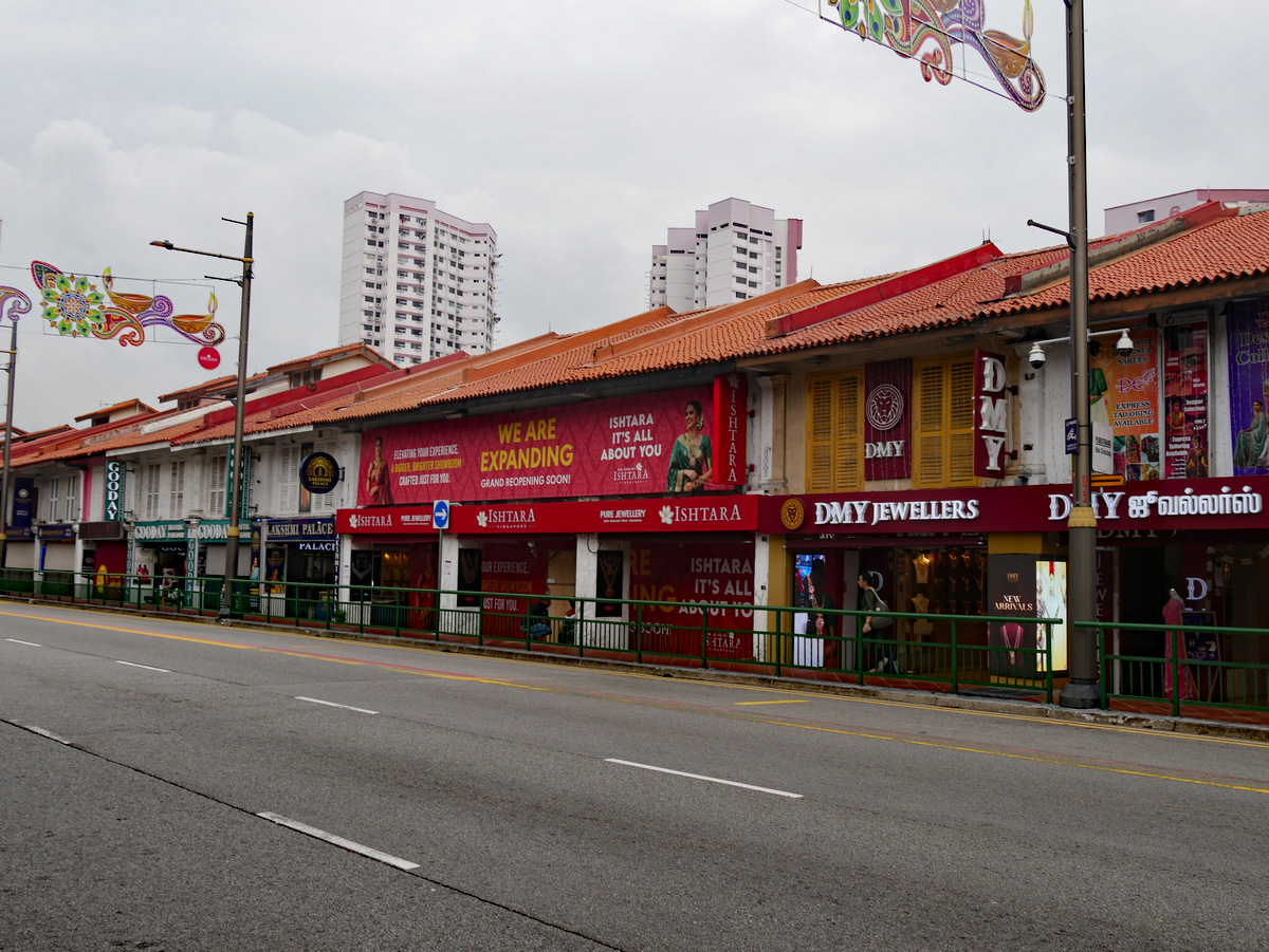 Von dort schlendern wir die Serangoon Road entlang. Auf einer Straßenseite reiht sich ein Juwelier an den nächsten – unübersehbar, dass Gold und Schmuck eine zentrale Rolle in der indischen Kultur spielen.