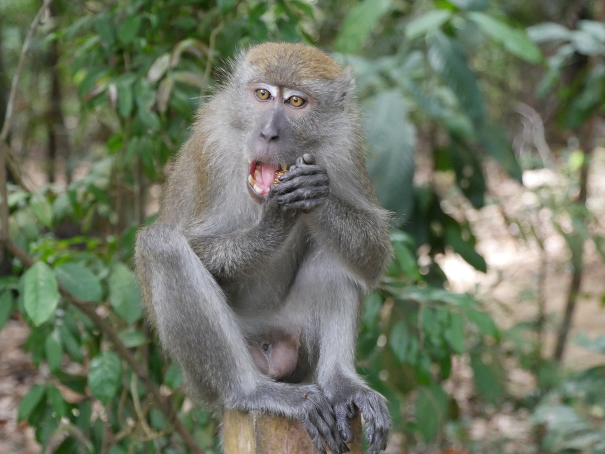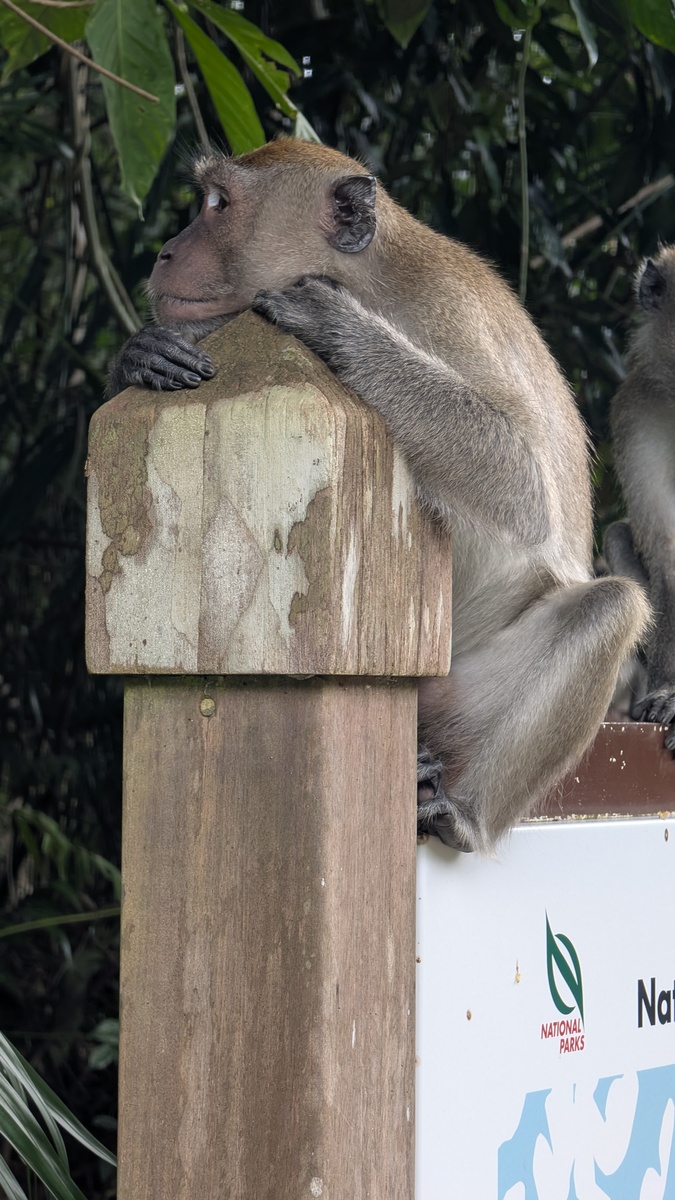 Wir starten unseren Trail beim Flame Tree Park und lassen uns treiben. Neben der vielfältigen Pflanzenwelt begegnen wir auch der dort lebenden Tierwelt – allen voran die frechen Makaken, die offenbar bestens an menschliche Besucher gewöhnt sind und den empfohlenen Abstand von zwei bis drei Metern ignorieren. Außerdem sehen wir Eichhörnchen, Schildkröten, Schmetterlinge und verschiedene Vogelarten.