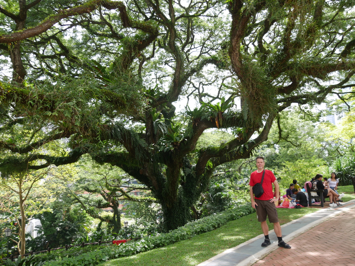 Nach der Stärkung führt uns der erste Programmpunkt zum Fort Canning Park. Er liegt auf einer Anhöhe am Clarke/Boat Quay. Einst errichteten die Briten hier ihre Gouverneursvilla, und 1860 wurde der Hügel zu einer Festung ausgebaut. Heute präsentiert sich die Anlage als wunderschöner Park mit verschiedenen Themengärten, der bei der Bevölkerung sehr beliebt ist. Viele Menschen treffen sich hier zum Picknicken, Spielen oder Singen.
