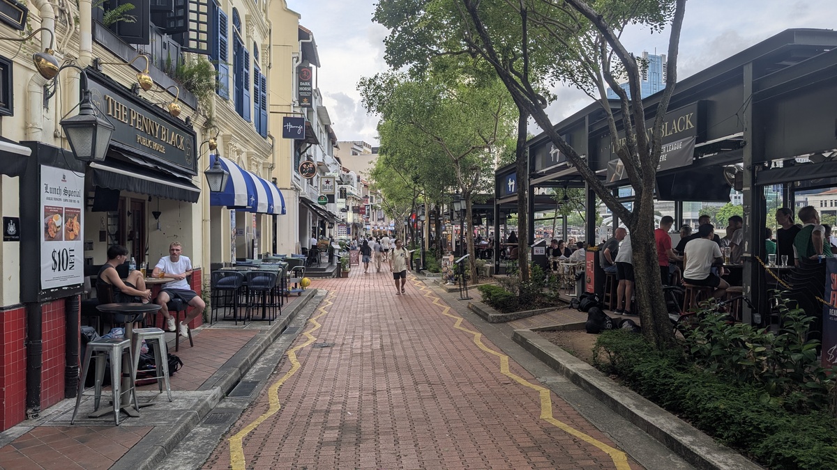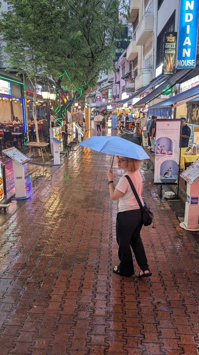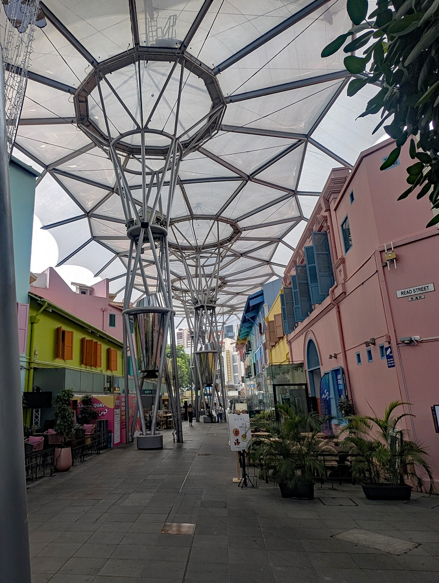 Vermutlich erwacht das Leben hier erst richtig am Abend, doch auch tagsüber sind trotz brennender Hitze viele Menschen unterwegs. Gut, dass ich einen kleinen Schirm in der Tasche habe – ein echtes Must-Have in Singapur, das nicht nur vor Regen, sondern auch vor der Sonne schützt.