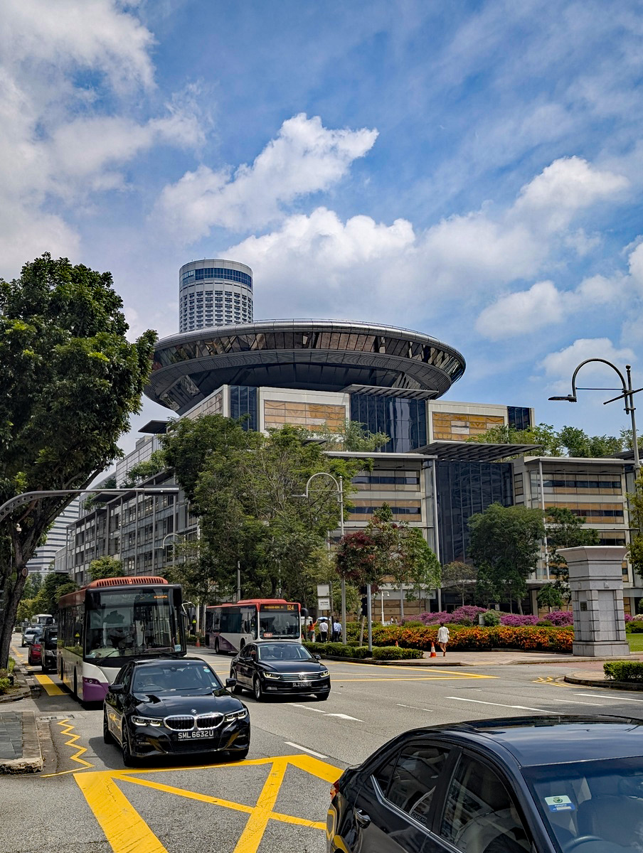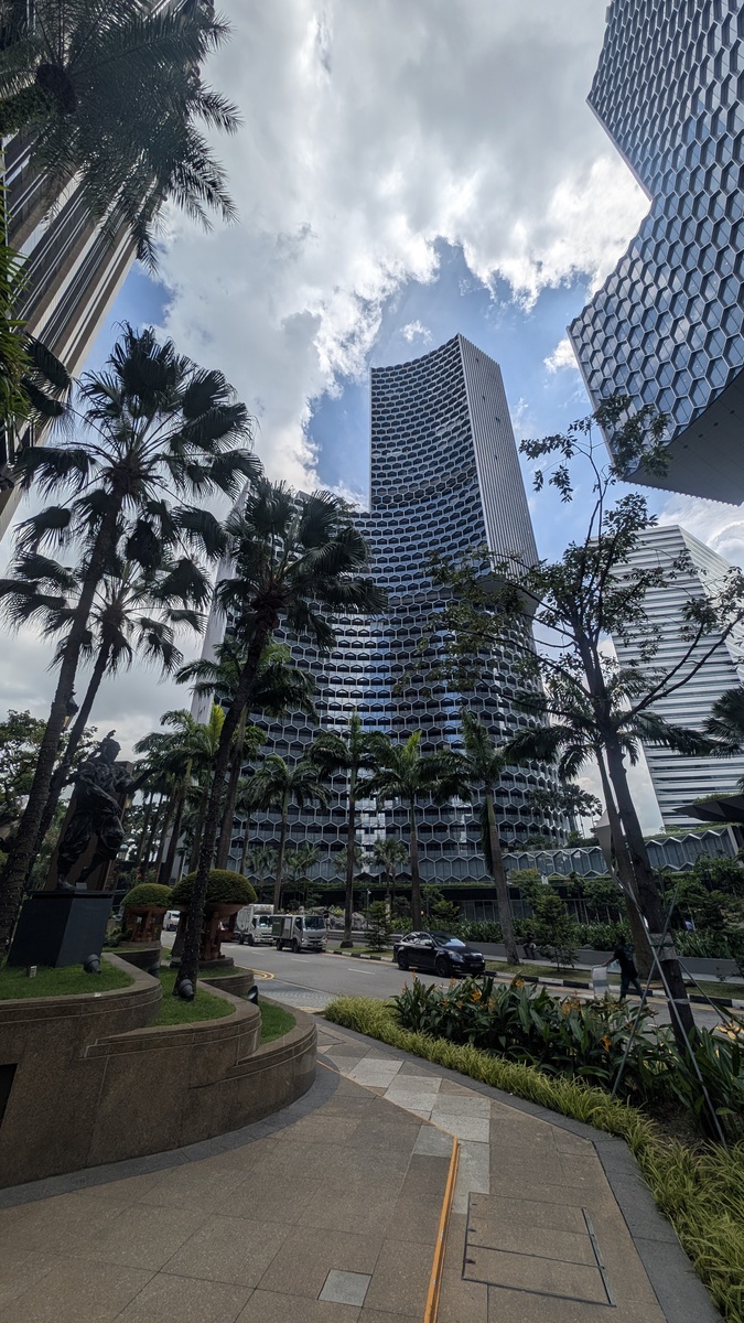 Auf dem Weg zur MRT-Haltestelle Bugis stoßen wir auf ein imposantes Gebäude, das wie aus einem dystopischen Computerspiel entsprungen wirkt. Man könnte sich glatt vorstellen, wie ganz oben hinter einem gewaltigen Schreibtisch ein dunkler Herrscher sitzt, Zigarre rauchend, die Welt im Blick. Hohe Räume, dunkle Farben, markante Formen – das Gebäude zieht uns sofort in seinen Bann, und wir können nicht widerstehen, einen Blick hineinzuwerfen.