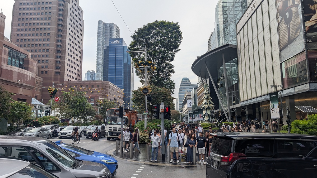 Nach dem Essen nehmen wir den Shuttle Bus, der uns vom New Bahru nach Somerset bringt. Damit sind wir auch schon angekommen an der bekannten Orchard Road.