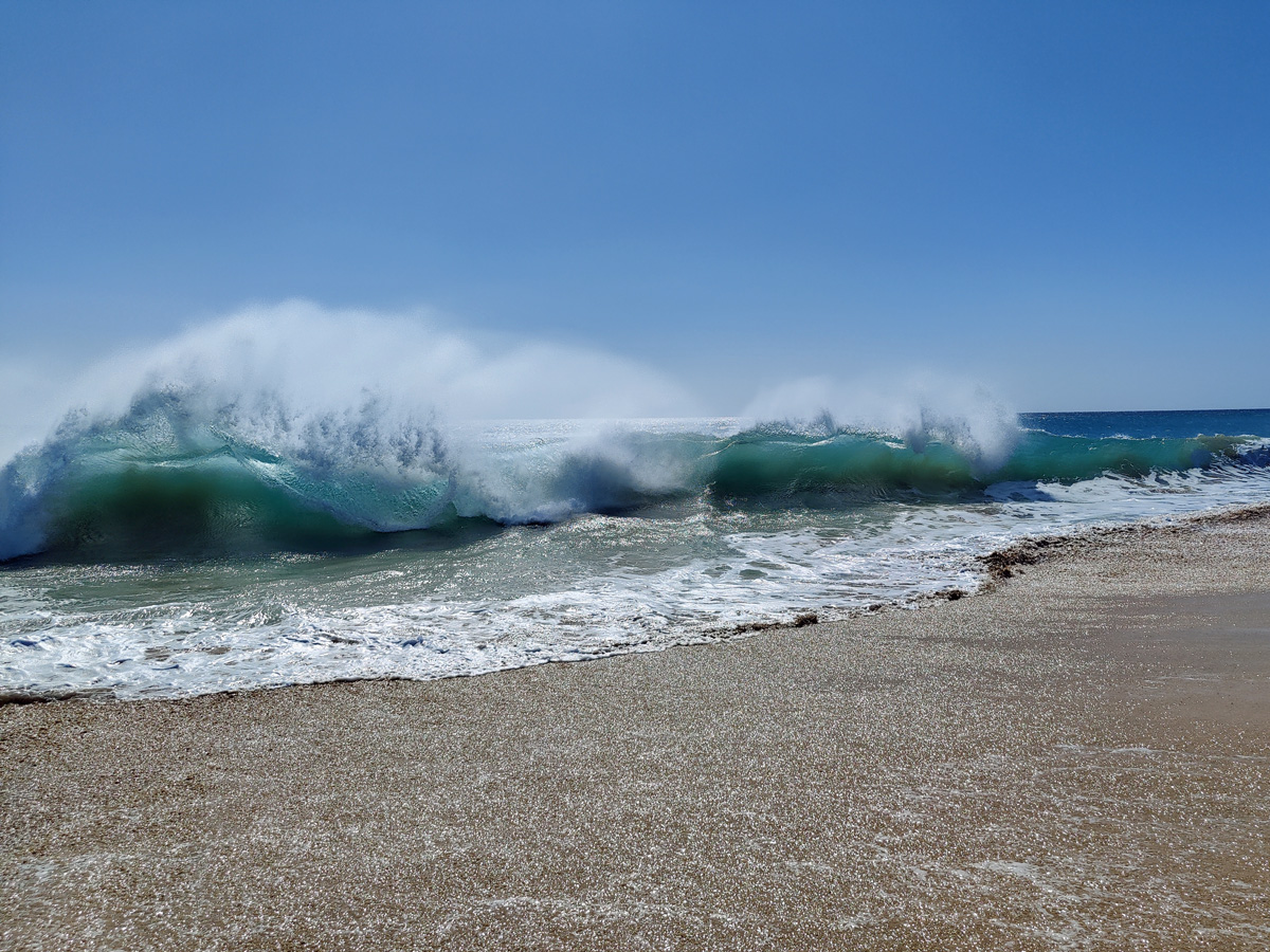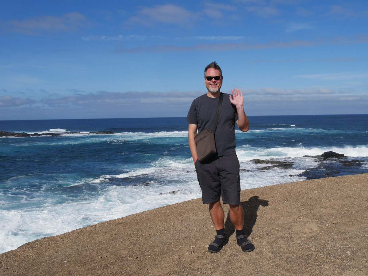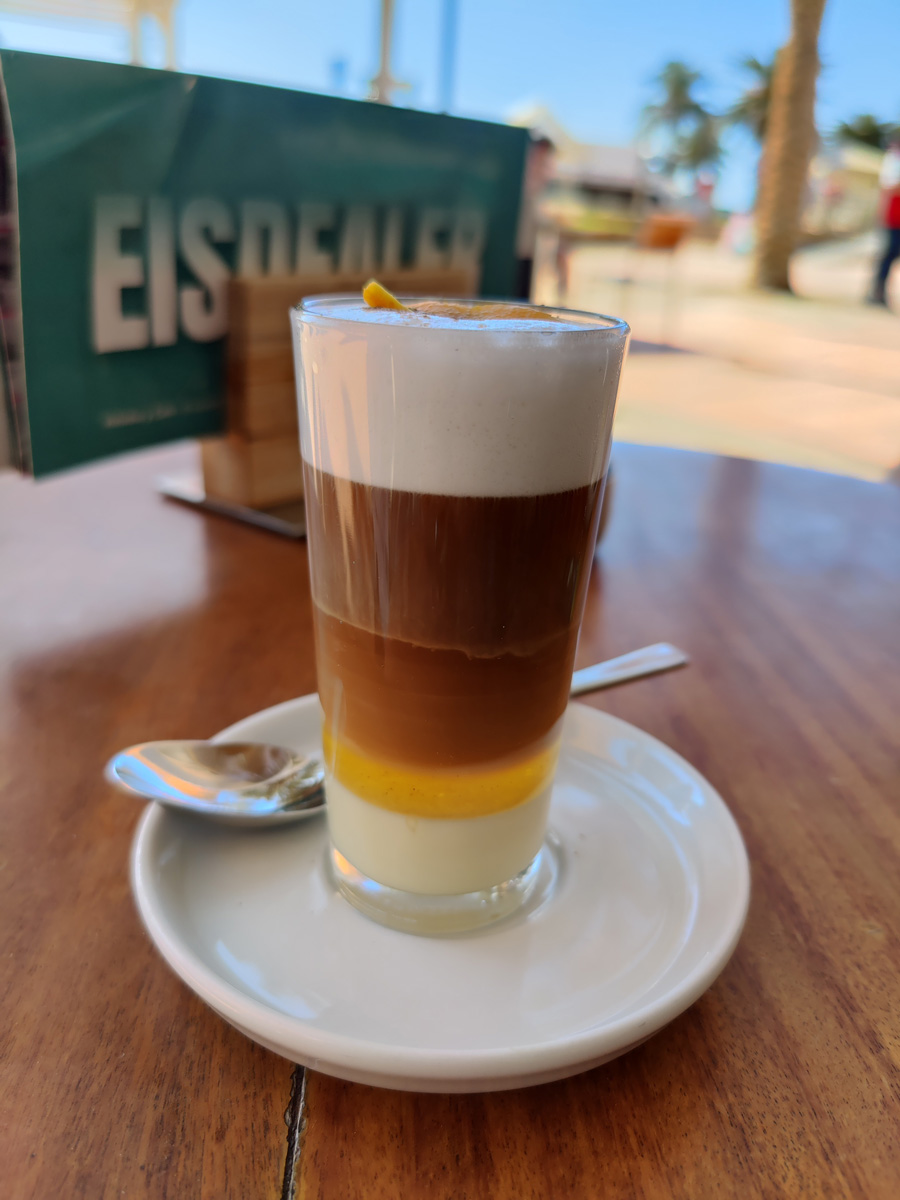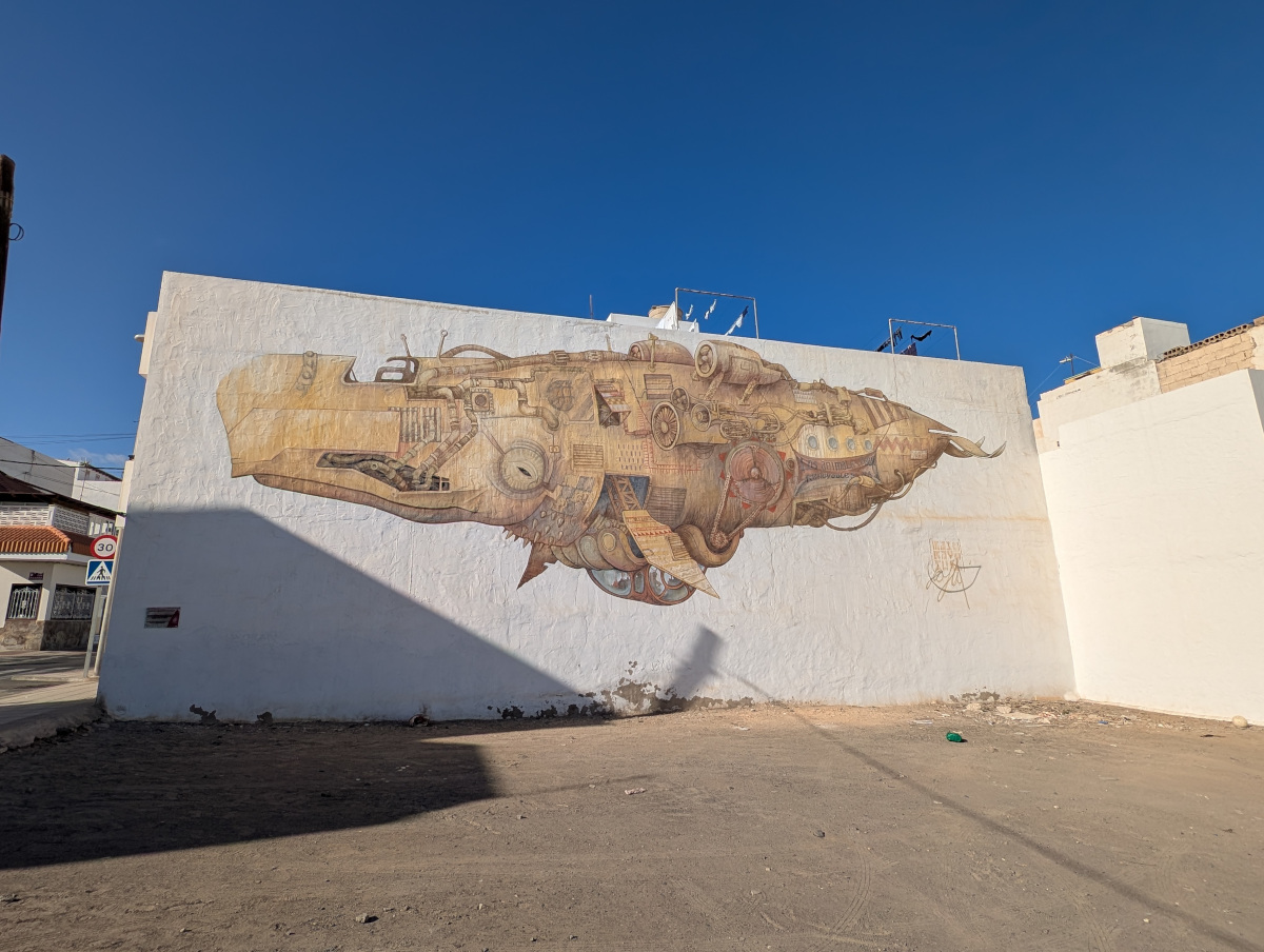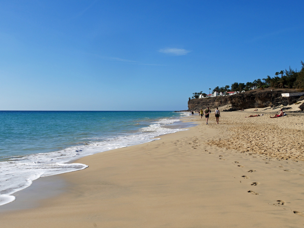 Am nächsten Morgen starten wir ausgeschlafen mit einem reichhaltigen Frühstück. Das Buffet lässt keine Wünsche offen. Anschließend spazieren wir am Strand entlang, von Playa Butihondo bis Playa Jandia, und verlassen diesen dort beim großen Walskelett, um die Promenade von Morro Jable entlangzuschlendern. Hier laden viele Geschäfte zum Bummeln ein. In einem Café genießen wir einen Barraquito, der den Kanarenurlaub erst komplett macht. Anschließend gehen wir den Weg zurück – insgesamt knapp 9 km. Zurück am Playa Butihondo, der auch bei Freunden der Freikörperkultur beliebt ist, stürze ich mich in die erfrischenden Wellen des Atlantiks.
