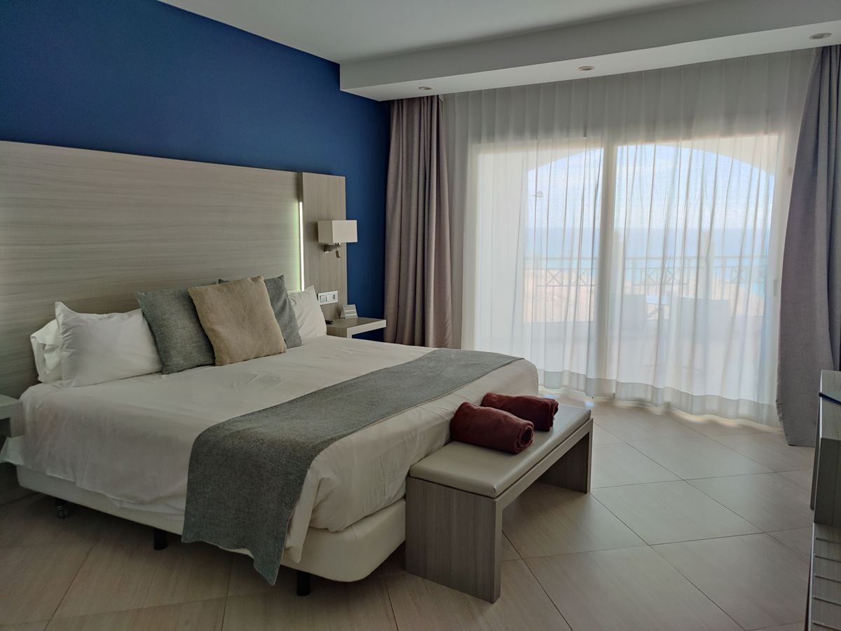 Nach einem kurzen Zwischenstopp im Mercadona, um uns mit Getränken und Snacks zu versorgen, erreichen wir das Hotel. Der Check-In läuft reibungslos und wir dürfen unser Zimmer bereits um 10:30 Uhr beziehen. Das 4-Sterne-Hotel macht einen sehr guten Eindruck, ebenso das Zimmer mit seitlichem Meerblick. Nun sitze ich hier auf dem Balkon, genieße den Blick auf einen vorbeiziehenden Katamaran und schreibe diese Zeilen, während Sören noch etwas Schlaf nachholt.