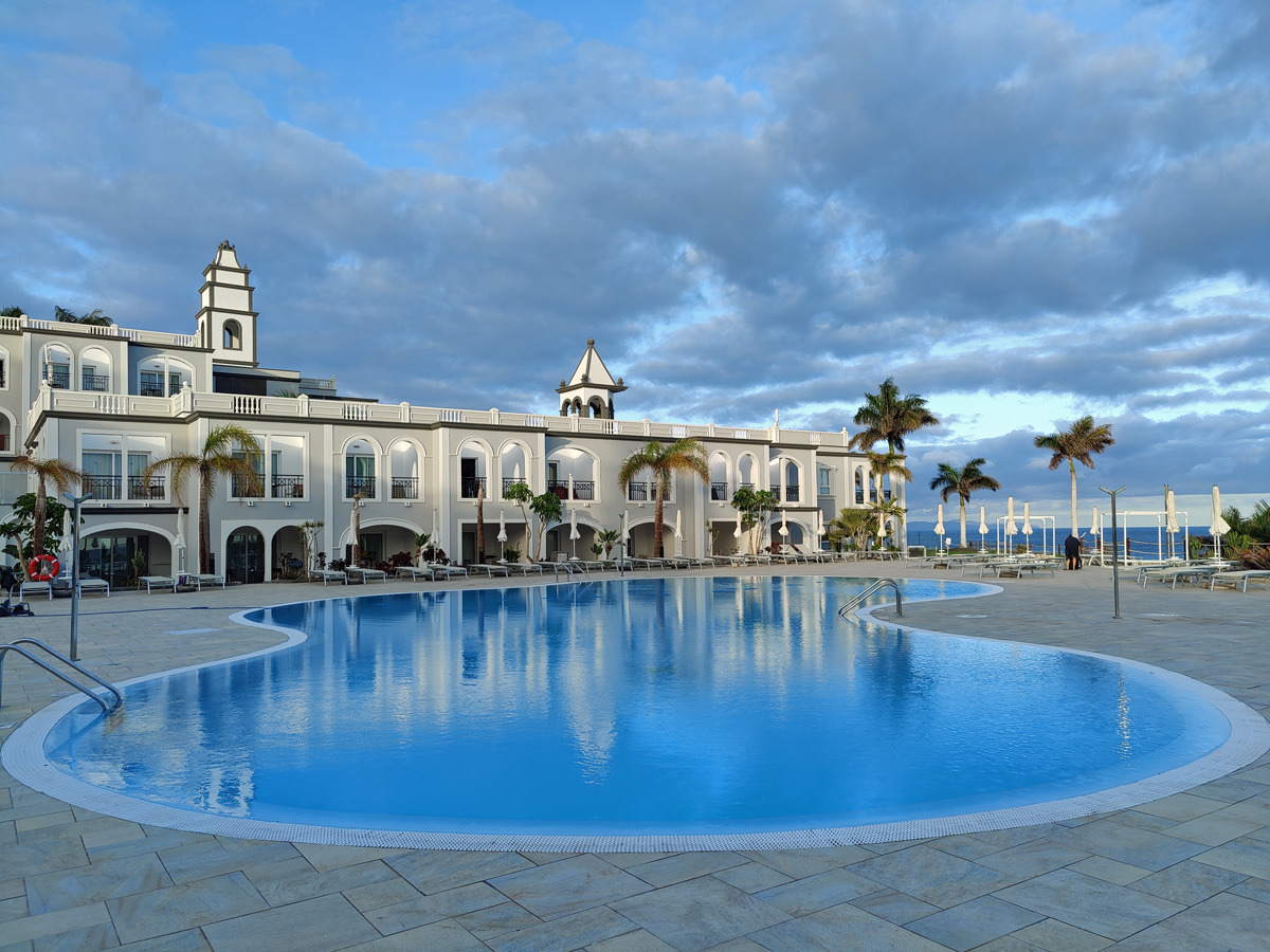 Ein paar Stufen weiter unten liegt der Playa Butihondo, ein schöner, weiter öffentlicher Sandstrand. Nach einigen Stunden gemütlichen Schlummerns am Pool erkunden wir weiter unsere palastartige Hotelanlage. Es gibt noch einen beheizten Indoorpool sowie einen Whirlpool mit vielen Liegen ringsum. Die Anlage ist sehr gepflegt und schön – vielleicht etwas überdimensioniert, aber das stört uns nicht.