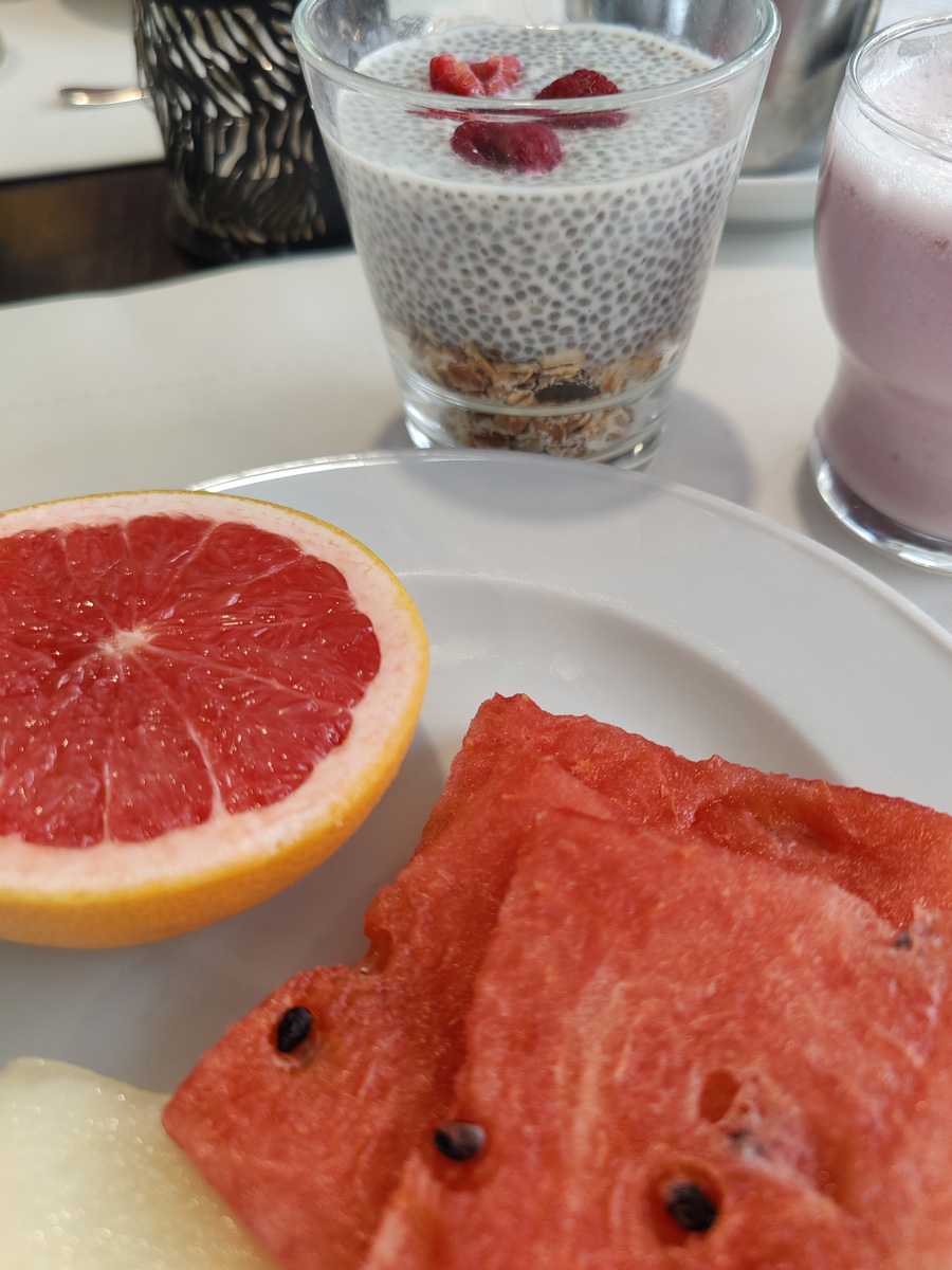 Wir haben Halbpension gebucht und der erste Abend überzeugt uns direkt von dieser Entscheidung. Das Buffet bietet toll zubereitete Vorspeisen, Salate, Suppen, Käse, Fisch und Fleisch von der Grillplatte. Leider ist beides etwas zu stark durchgebraten und daher trocken, aber die Auswahl an Desserts und Früchten ist großartig.