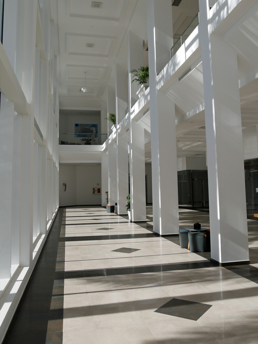 Kurze Zeit später ziehen wir die Badesachen an und gehen Richtung Pool, um auf den Liegen etwas zu dösen. Die Größe des Hotels ist beeindruckend. Ich kann mich nicht erinnern, je in einer so weitläufigen Anlage untergebracht gewesen zu sein. Durch einen hellen, lichtdurchfluteten Gang mit mehreren (meist leerstehenden) Shops gelangen wir zur ersten Poolebene: ein großer Salzwasserpool, der kaum genutzt wird – wohl, weil er nicht beheizt ist. Einige Treppen weiter unten erreichen wir einen Bereich mit zwei kleineren, beheizten Pools. Hier ist mehr los, dennoch finden wir problemlos Liegen.