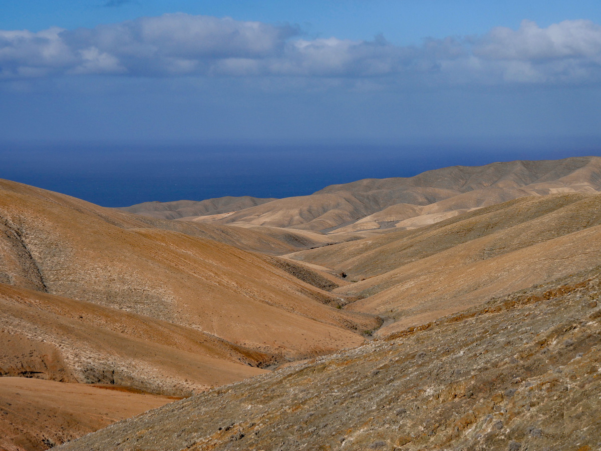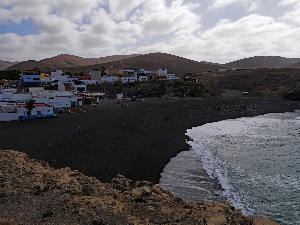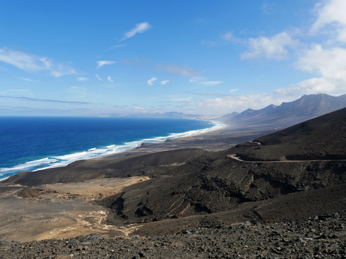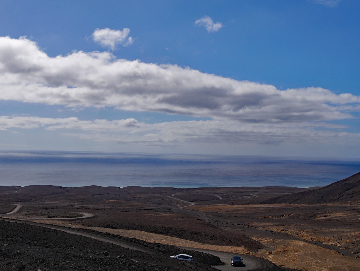 Dienstag fahren wir mit dem Auto durch den Nationalpark von Jandia Richtung Süden. Über eine staubige Piste erreichen wir den Leuchtturm Faro de Jandía, erbaut 1864 und einer der ältesten der Kanaren. Hier am südlichsten Punkt Fuerteventuras weht ein kräftiger Wind und wir genießen den Blick auf die Klippen und die gewaltigen Atlantikwellen. Weiter sehen wir das beeindruckende Bergmassiv, das den Strand von Cofete umgibt. Cofete selbst ist abgelegen, nur über die Piste von Morro Jable erreichbar. Der Strand eignet sich kaum zum Baden, ist aber aufgrund der eindrucksvollen Kulisse definitiv einen Besuch wert.